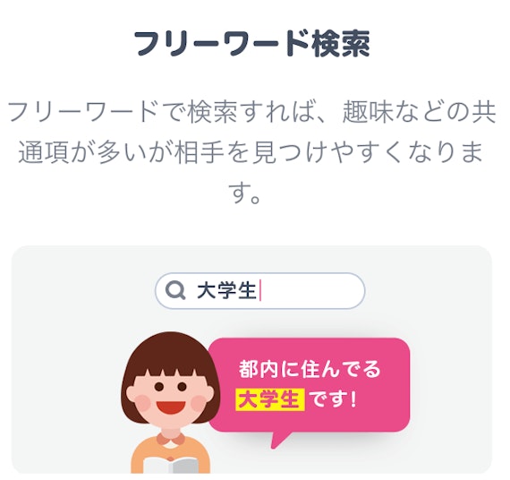 Pairsなど、他のマッチングアプリはもう少し年齢層が高いので、「若い女性と出会いたい・付き合いたい」男性にはうってつけのアプリと言えます。